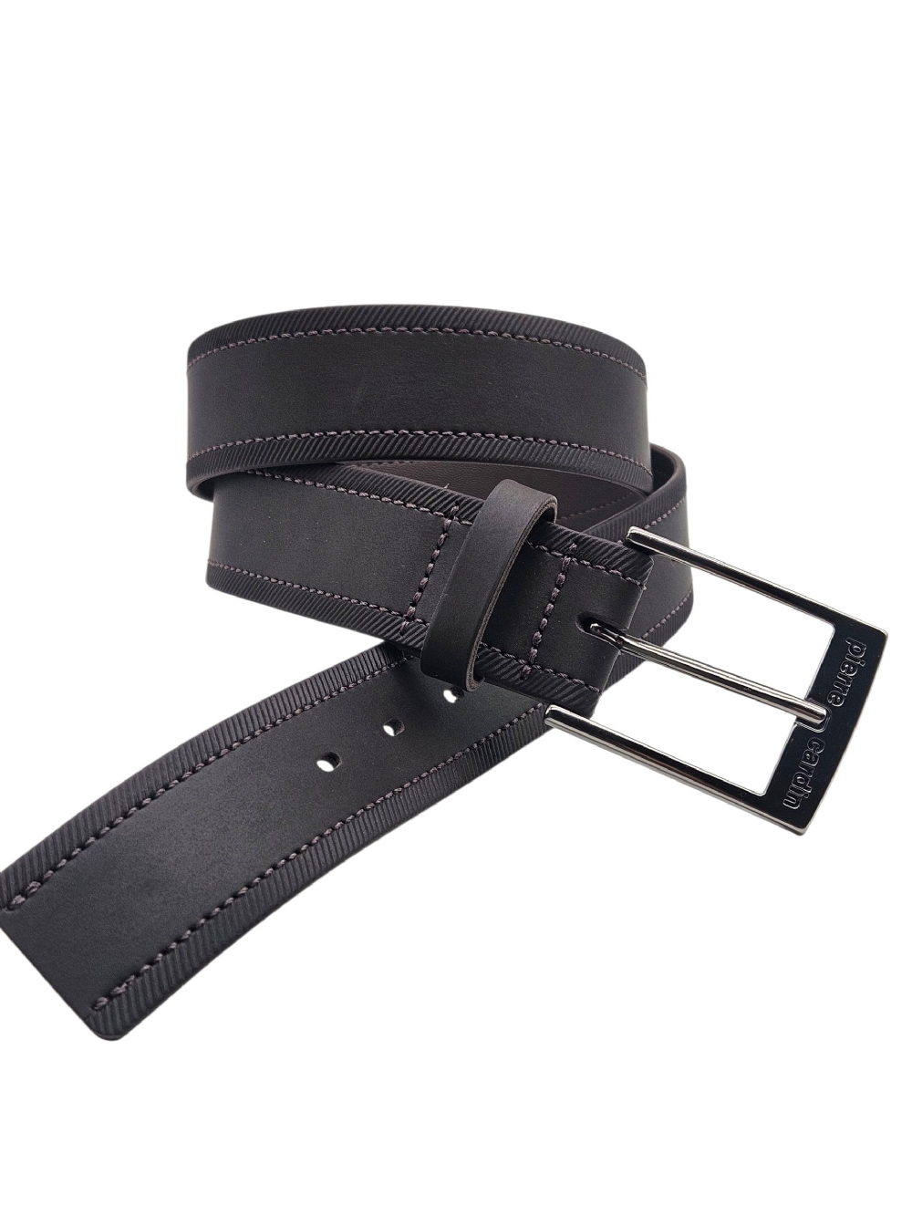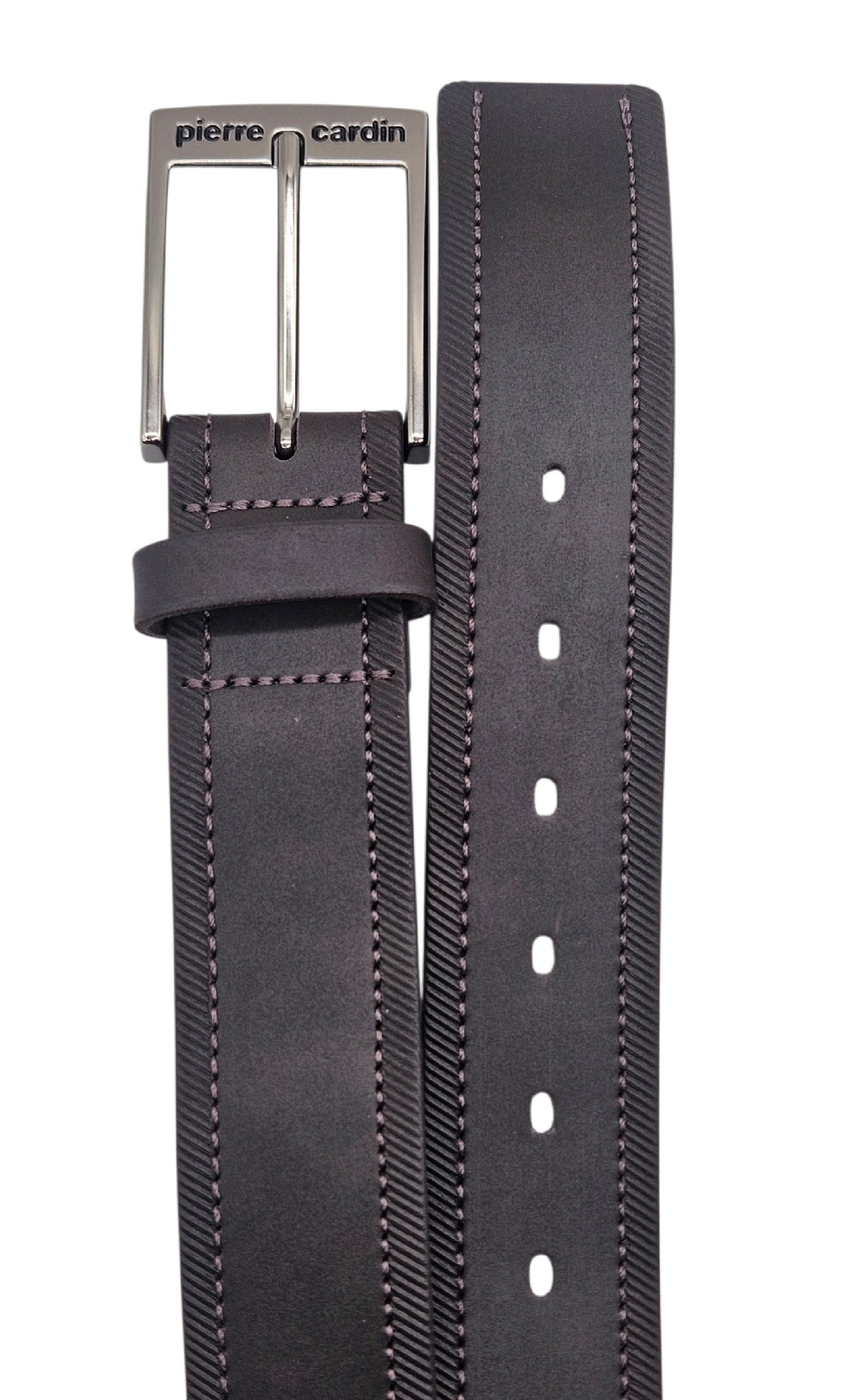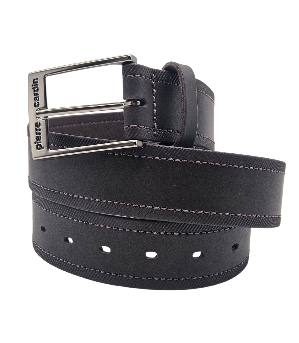 O cinto Pierre Cardin tem largura de 4cm com detalhe na tira costurado liso na parte do meio e riscadinho na lateral, a fivela em formato retangular com a marca Pierre Cardin gravada dá um charme ao cinto, além de possuir 7 furos para um maior conforto e ajuste ao corpo.